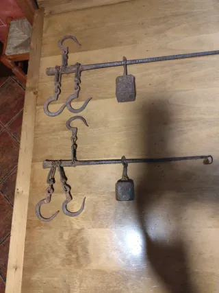 Se venden dos balanzas romanas antiguas, ideales para coleccionistas o decoración. - Fabricadas en metal. - Diseño clásico de balanza.