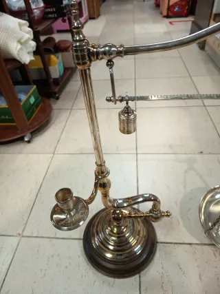 Balanza antigua de metal con un diseño muy original. Incluye porta velas, giro 360 grados. Peso 4,30 kg. Altura 50 cm.