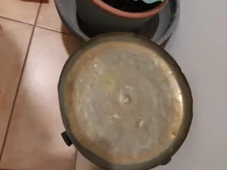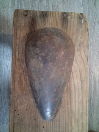 Pieza antigua de plato de balanza, con un diseño clásico y un acabado metálico oxidado que le da un carácter único. - Material: Metal - Forma: Lágrima - Acabado: Oxidado