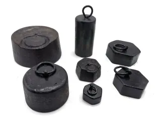 Conjunto de pesas de hierro para balanzas antiguas. de 2kg a 0,50 gm.