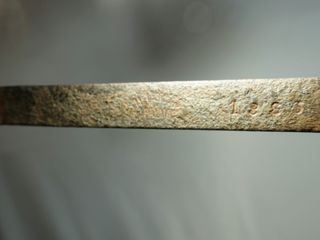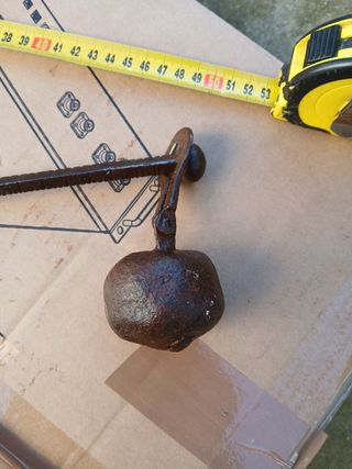Antiquisima Balanza antigua de hierro con contrapeso, tipo bola . Marcajes muy antiguos . 50 cmtros de largo.
