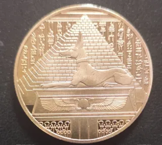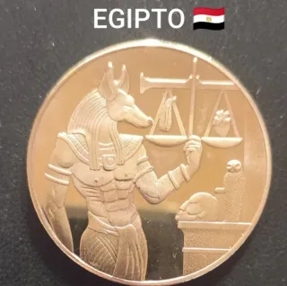 Medalla conmemorativa de Egipto, con diseño inspirado en la mitología. - Representación de Anubis. - Incluye una balanza. - Detalle de un búho y una cabeza. - Acabado metálico.