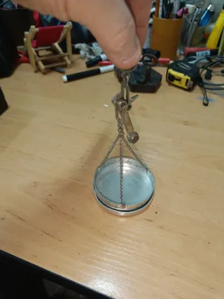 Balanza con un diseño clásico y elegante. Perfecta como pieza decorativa o para coleccionistas. - Incluye dos platillos y cadenas.