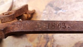 ANTIGUA BARRA DE ROMANA. FECHADA EN EL AÑO 1863. INSCRIPCIONES DEL ROMANERA. PIEZA CON ÓXIDO. LAS FOTOGRAFÍAS FORMAN PARTE DE LA DESCRIPCIÓN. PIEZA DE COLECCIÓN. DECORACIÓN RÚSTICA