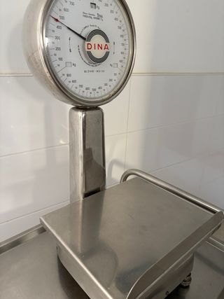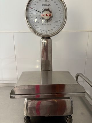 Balanza de cocina antigua Dina, ideal para decoración o uso ligero. Es una pieza elegante y robusta, en buen estado. - Marca: Dina - Capacidad: 2 kg - Material: Metal - Diseño vintage