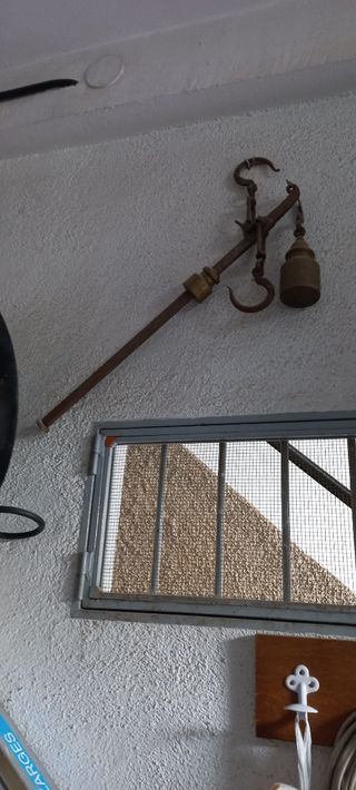 Vendo romana de pesaje muy antigua en perfecto estado. Precio 75€ - Barra de metal. - Gancho superior.