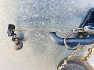 Balanza de resorte antigua, datada del siglo XIX. Un objeto decorativo con historia soporta 100 kg. Mecanismo de resorte visible. Enganches metálicos. Esfera con marcas de medición. Esta es una balanza de resorte. Se utilizaban para pesajes aproximados en granjas, cocinas y en cacerías de animales o pieles. Durante la segunda mitad del siglo XIX se fabricaron grandes cantidades de balanzas Mancur en América y Europa, y eran utilizadas generalmente por agricultores. Significado Este artículo es un ejemplo de un tipo antiguo de balanza colgante. Descripción física. Un juego de básculas colgantes redondas pequeñas con gancho..