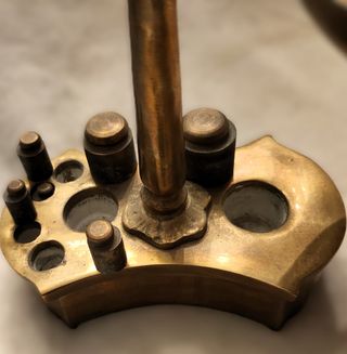 Balanza de precisión antigua con pesas