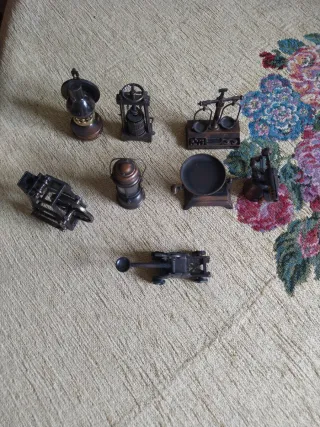Conjunto de 8 sacapuntas antiguos de metal. - Diseño de objetos vintage. - Material: Metal. - con movimiento, en funcionamiento. - balanza con pesas independientes. - todos en perfecto estado. - precio unitario 8 euros. (Lote 50)