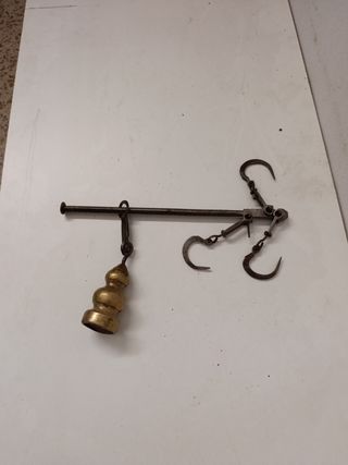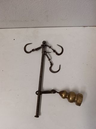Antigua balanza romana en buen estado. Ideal para coleccionistas. - Capacidad de hasta 15 kg. - Material: metal y latón. - Diseño clásico y robusto.
