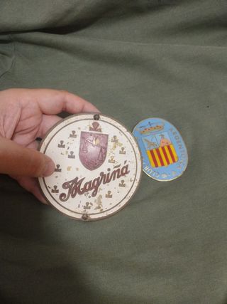 Lote de 2 antiguas insignias, placas broches medallas -insignia medalla de metal con tornillos(los conserva) Magriñá años 60 de las balanzas de las tipicas tiendas antiguas que ponian todo a peso, a color.. 15e - Insignia Broche de metal Club petanca de argentona (Barcelona) muy bonito a color, broche en buen estado funciona..10e No negociables Palabras corona de aragon, España historia antigüedad antiguo antiguedades histórico precio especial también se venden juntos al precio indicado. Cobre o bronce No plata oro Se envía a toda ESPAÑA Se convinan envios No se hacen devoluciones