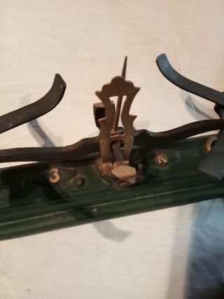 Antigua balanza romana de hierro, ideal para coleccionismo. Se encuentra en buen estado de conservación, considerando su antigüedad. - Fabricada en hierro. - Capacidad de 200 kg. - Diseño clásico y robusto. Medidas: 88 x 25 cms (largo x alto) Ref: Dac Puedes verlo y recogerlo presencialmente en el Polígono de Raos Santander. Tlf: 635153338. Abrimos las mañanas de Lunes a Sábado de 10 a 14 h y las tardes de Lunes a Viernes de 17 a 20 h.