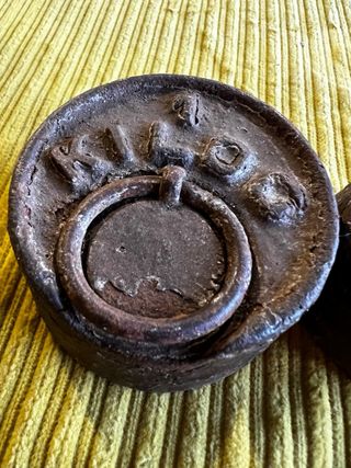 Conjunto de 3 pesas antiguas para balanza. Puedes verlo y recogerlo presencialmente en el Polígono de Raos, Santander. Tlf: 635153338. Abrimos las mañanas de Lunes a Sábado de 10 a 14h y las tardes de Lunes a Viernes de 17 a 20h.