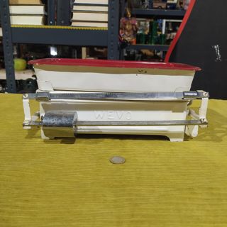 Antigua balanza de pesas correderas "Wevo" en color blanco y rojo. Funciona. Medidas: 14,5 x 30,5 x 18 cms (alto x largo x profundidad) Ref: J.C Puedes verlo y recogerlo presencialmente en el Polígono de Raos Santander. Tlf: 635153338. Abrimos las mañanas de Lunes a Sábado de 10 a 14 h y las tardes de Lunes a Viernes de 17 a 20 h.