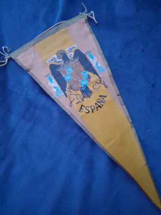 Banderín con el escudo de España y el águila. Escudo pre Constitución - Colección, exposición, decoración - Diseño con los colores de la bandera española. - Inscripción UNA GRANDE LIBRE y ESPAÑA. - Mide 33cm