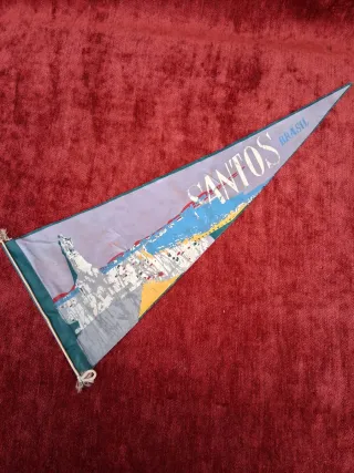 Banderín antiguo con diseño de Santos, Brasil. - Se compraban como souvenirs, recuerdo de viaje - Original de finales de los años 50s. - Colección, decoración, exposición, mide 52cm