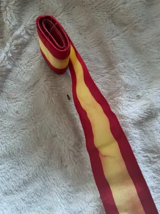 Cinta con los colores de la bandera de España. - Diseño de tres franjas: dos rojas y una amarilla central. - Material textil. 2'5 m aprox
