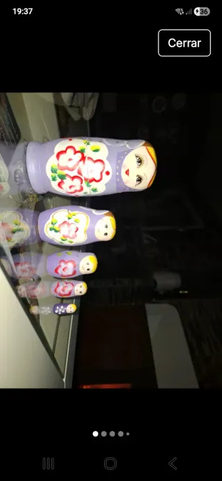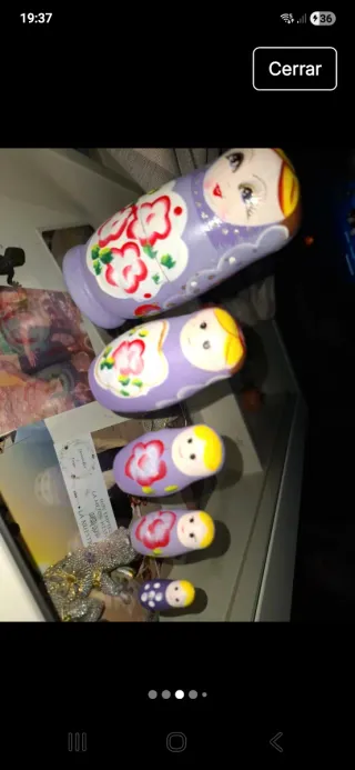 Conjunto de muñecas Matrioska tradicionales, también conocidas como muñecas rusas. - Diseño pintado a mano. - Tonos morados y flores. - Varias muñecas de diferentes tamaños.