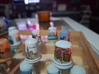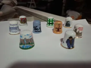 Conjunto de 9 dedales decorativos. -Dublin. - Madrid. - Ronda. - Pedro Abad. - Arcos de la Pastora, Medina Sidonia. - Galicia. -London. - Córdoba. -Valdepeñas.
