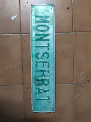 Matrícula antigua con el nombre de Montserrat. Ideal para coleccionistas o decoración. - Letras en relieve. - Color verde. - Material metálico.