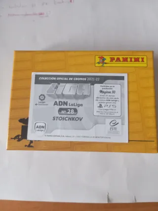 Cromo de fútbol de Hristo Stoichkov, edición Panini. - Temporadas: 1990-1995 y 1996-1998. - Partidos: 175. - Goles: 83. - Equipo: FC Barcelona.