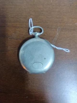 Antiguo reloj de bolsillo de la marca UNIC. - Esfera blanca con números arábigos. - Subesfera para los segundos. - Caja de metal plateado.