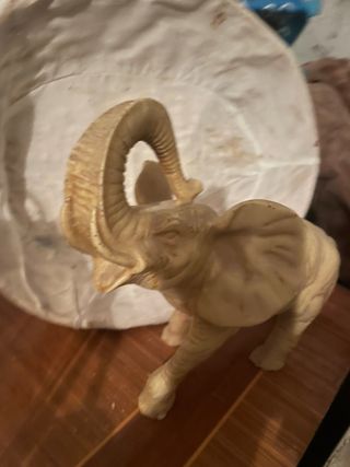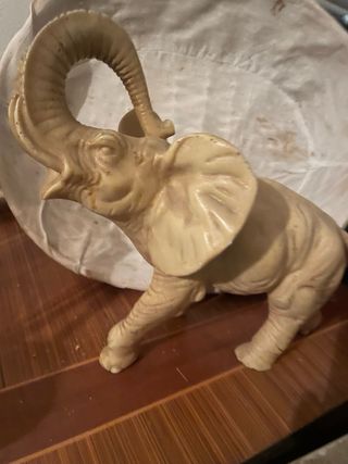 Figura decorativa de un elefante con la trompa hacia arriba. - Diseño detallado. - Color beige.