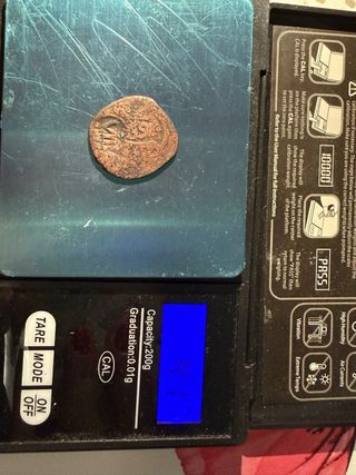 Moneda antigua de España, con detalles grabados. - Material: Cobre - Peso: 1.1g