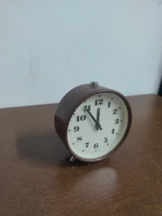 Este es un reloj despertador antiguo con una carcasa de color marrón. - Diseño clásico. - Esfera de fácil lectura.