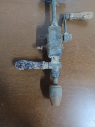 Herramienta manual antigua para taladrar. - Mango de madera. - Cuerpo metálico.
