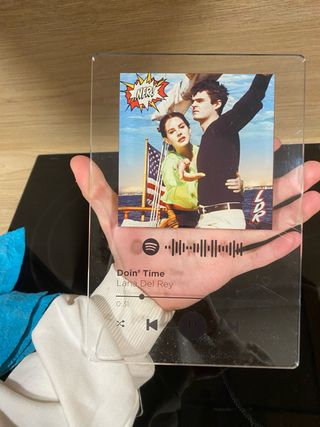 Placa decorativa de cristal con la portada de la canción Doin' Time de Lana Del Rey y código Spotify. - Diseño inspirado en la música. - Material: Vidrio.