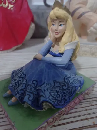 Figura decorativa de la princesa Aurora de Disney, fabricada por Enesco. Representa a la princesa sentada con su característico vestido azul. - Diseño detallado. - Pintura artesanal.