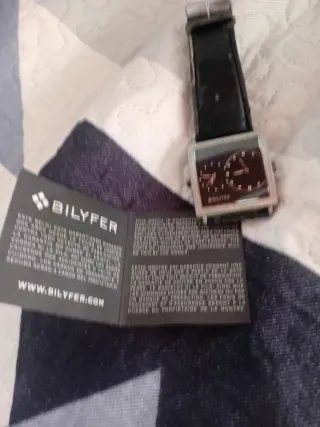 Reloj de pulsera Bilyfer con doble esfera, ideal para coleccionistas. - Diseño cuadrado con correa de cuero negra. - Dos esferas para diferentes funciones o zonas horarias. -reloj de alta gama -certificado de garantía internacional -solo coleccionistas serios -escucho ofertas