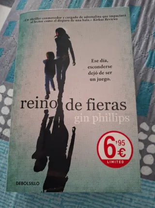 Novela Reino de fieras de Gin Phillips. - Un thriller conmovedor y cargado de adrenalina. - Ese día, esconderse dejó de ser un juego. - Edición de Debolsillo.