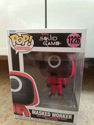 Figura Funko Pop! del personaje Masked Worker de la serie Squid Game de Netflix. Número de coleccionista 1226. - Figura de vinilo. - Diseño inspirado en la serie. - Caja con ventana para exhibición.