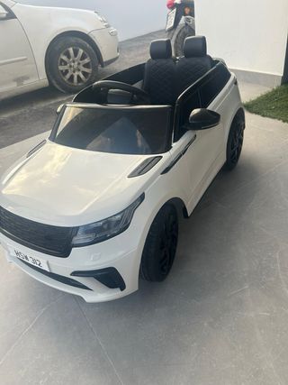 Coche eléctrico infantil con diseño inspirado en Range Rover. - Color blanco. - Asiento con cinturón de seguridad. - Volante. - Espejos retrovisores.