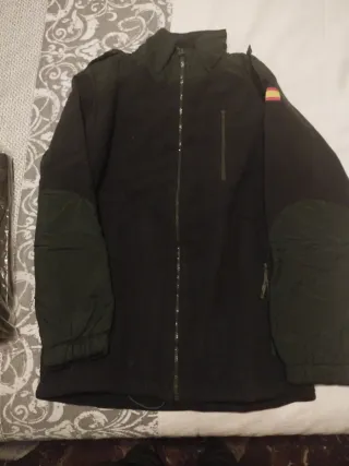 Chaqueta de color verde, ideal para el frío. Cuenta con un diseño funcional y práctico. - Cierre de cremallera frontal. - Bolsillo con cremallera en el pecho. - Parche de la bandera de España en la manga. - Refuerzos en los codos.