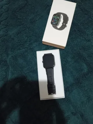 Reloj inteligente con diseño moderno y pantalla táctil. - Correa negra ajustable. - Caja cuadrada. - Muestra la fecha y la hora.