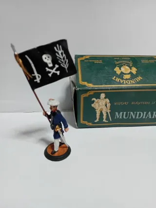 Figura de colección de un soldado de plomo de la marca Mundiart. Abanderado de husares de la muerte carlistas de 54mm mundiart caja original - Figura de plomo pintada a mano. - Caja original de Mundiart, Valencia, España.