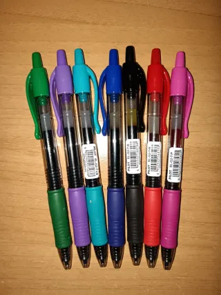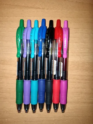 Conjunto de siete bolígrafos Pilot G-2 con punta de 0.7mm. - Incluye bolígrafos de colores surtidos. - Punta fina para escritura precisa.