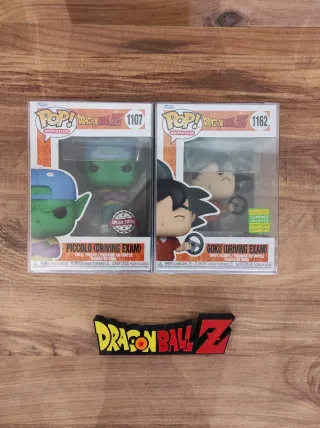 Dos figuras Funko Pop! de la serie Dragon Ball Z. - Funko Pop! Animation Piccolo (Driving Exam) #1107 Special Edition. - Funko Pop! Animation Goku (Driving Exam) #1162 Edición Limitada Summer Convention 2022. Protector duro incluido No se venden por separado Envío rápido y protegido Logo DBZ no incluido