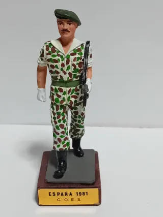 Figura de colección de soldado de plomo a escala 90mm. - Fabricado por Eko Almirall. - Detalle de uniforme y armamento. - Base con inscripción 'ESPAÑA 1981 C. O. E. S.'