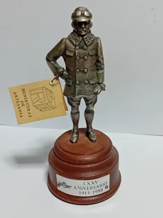 Figura de colección de soldado de plomo a escala 90mm. Representa a un aviador con uniforme de época. - Detallada figura de metal. - Base de madera con placa conmemorativa. - Etiqueta de Miniaturas de Artesanía incluida.