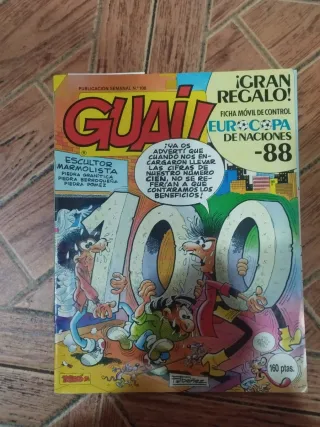 Revista de cómic Guai! número 100. - Publicación semanal. - Incluye Ficha móvil de control Eurocopa de Naciones -88. - Contiene un gran regalo. - Precio: 160 ptas. REGALO N° 175 RESCATADOS DE UN INCENDIO SUELTOS A 3€ UNIDAD MAS LOTES EN MI PERFIL, SE PODRIA HACER PRECIO LLEVANDO MAS LOTES