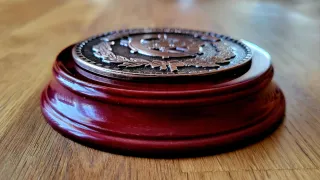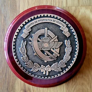 🔵 Pisapapeles militar del Centro de Informática de Gestión del Ejército del Aire y del Espacio (CIGES). NUEVO, sin usar. En madera y metal. Diseñado con el escudo del CIGES metálico sobre base de madera. Puede usarse como metopa. Medidas: Base de madera 11 cm. de diámetro × 2,5 cm. de grosor Escudo circular en metal 8 cm. Peso: 175 g. Puedo juntar varios artículos para enviarlo como un lote. Mira mi perfil. Se puede entregar en mano en Toledo o Madrid o realizar envío por correo. Cuartel General del Aire metopa medalla símbolo distintivo condecoración regalo coleccionismo anillo núcleo ferrita varilla rokiski corona de laurel