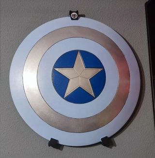 Soporte de pared para escudos versión mejorada más resistente y compacto. Fabricado con impresora 3d. Una forma segura y vistosa de tener el escudo bien expuesto y que ocupe poco espacio. Compatible con la mayoría de los escudos ya sean de Hasbro, Marvel, con un mínimo de diámetro de 50cm. Se pueden personalizar.