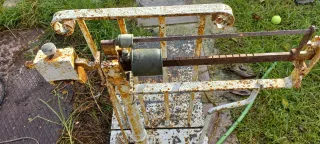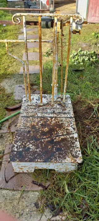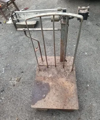 Báscula antigua de hierro, ideal para coleccionistas o decoración. - Estructura robusta de metal. - Base amplia para pesar. - Mecanismo visible.