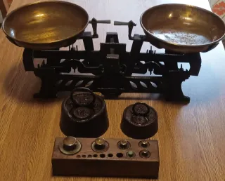Báscula antigua con pesas