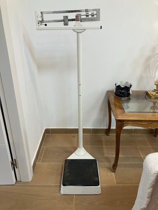 Báscula médica antigua con altímetro
