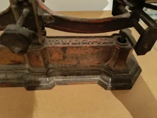 Báscula antigua de hierro fundido, ideal para coleccionistas o decoración.. está pulida con un cepillo de púas metálicas así que no deja nada de polvillo. No mancha nada